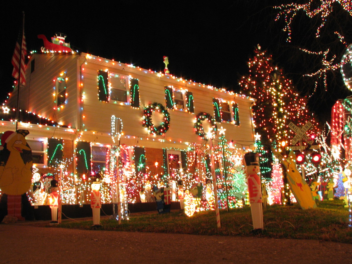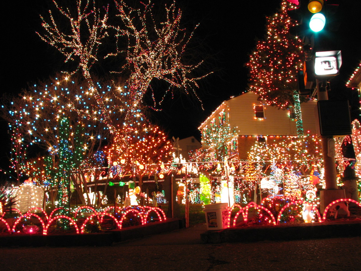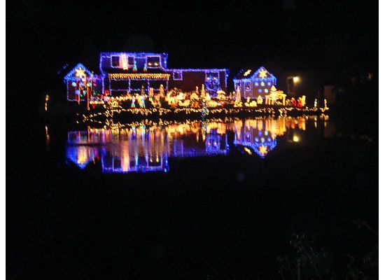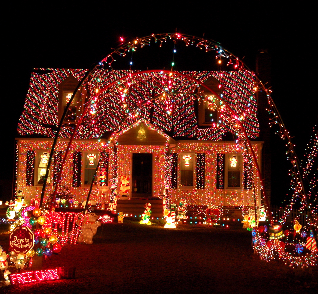 Passers-by admire a home adorned with Christmas kitsch in the Sydney suburd of Matraville on December 22, 2008. Every year clusters of streets around Sydney dazzle the neighborhood with nativity scenes, faux snow, inflatable Santas, and twinkling fairy lights. AFP PHOTO/Torsten BLACKWOOD