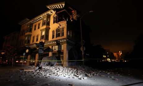 A building is seen destroyed following a 6.0 earthquake in Napa, California. Photograph: Justin Sullivan/Getty Images